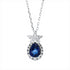 Collier 18 kt WG. mit ZÖ 40 cm + 43 cm. 3 Navette 0.25 ct. TW-si. 2 Tropfen 0.07 ct. TW-vsi. 13 Brillanten 0.15 ct. TW-si. 1 Saphir 1.50 ct blau. L:45.7 cm