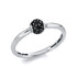 Ring 18 kt WG. Fassung schwarz rhodiniert. 19 Brillanten 0.19 ct. schwarz. H:5.0 mm. B:5.2 mm. Weite:54